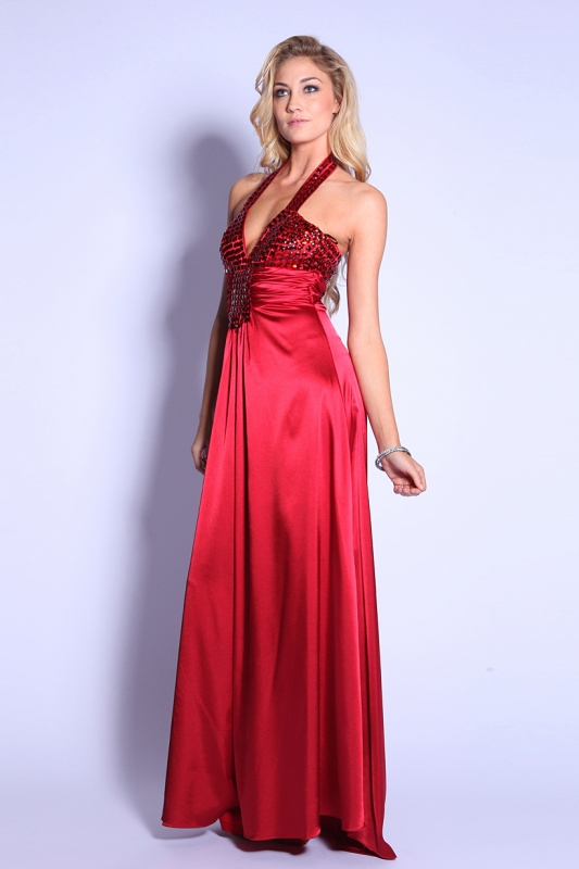 Rudá? V dlouhých luxusních saténových šatech Ruby Red s kameny na podprsence opravdu zazáříte na každém plese či společenské události.
