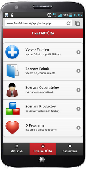 Aplikácia je špeciálne vytvorená pre mobilné zariadenia a funguje cez akýkoľvek prehliadač. S apkou FreeFAKTURA.sk vystavíš ľubovoľný počet faktúr a po pár klikoch ich pošleš E-mailom ako PDF-ko. FreeFAKTURA.sk má prehľadný dizajn a obsahuje všetko potrebnépre rýchlu tvorbu faktúr v mobilných zariadeniach. FreeFAKTURA.sk má VŠETKO čo potrebuješ!