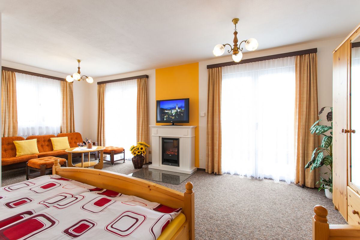 Všechny pokoje penzionu jsou vybaveny vlastním WC, sprchou, plochou LCD televizí se satelitním příjmem a minibarem. V některých pokojích Vám ubytování zpříjemní kuchyňka s mikrovlnkou.